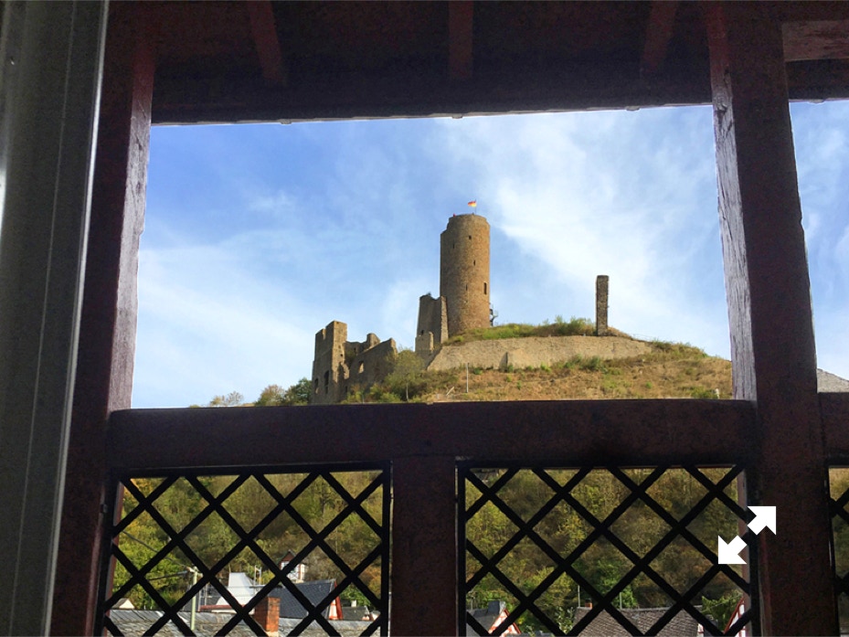 - Balkon mit Blick auf die Löwenburg Ruine,