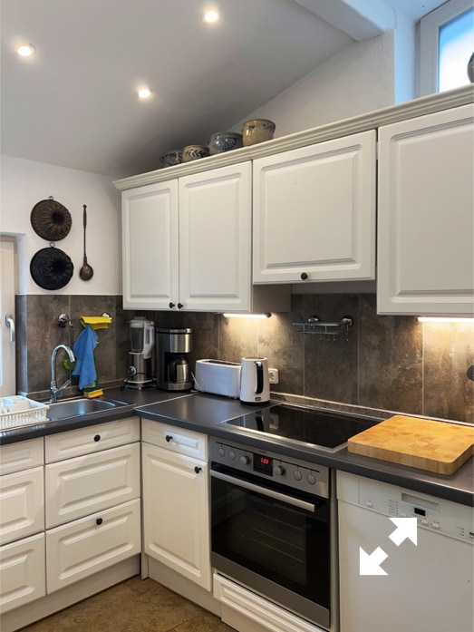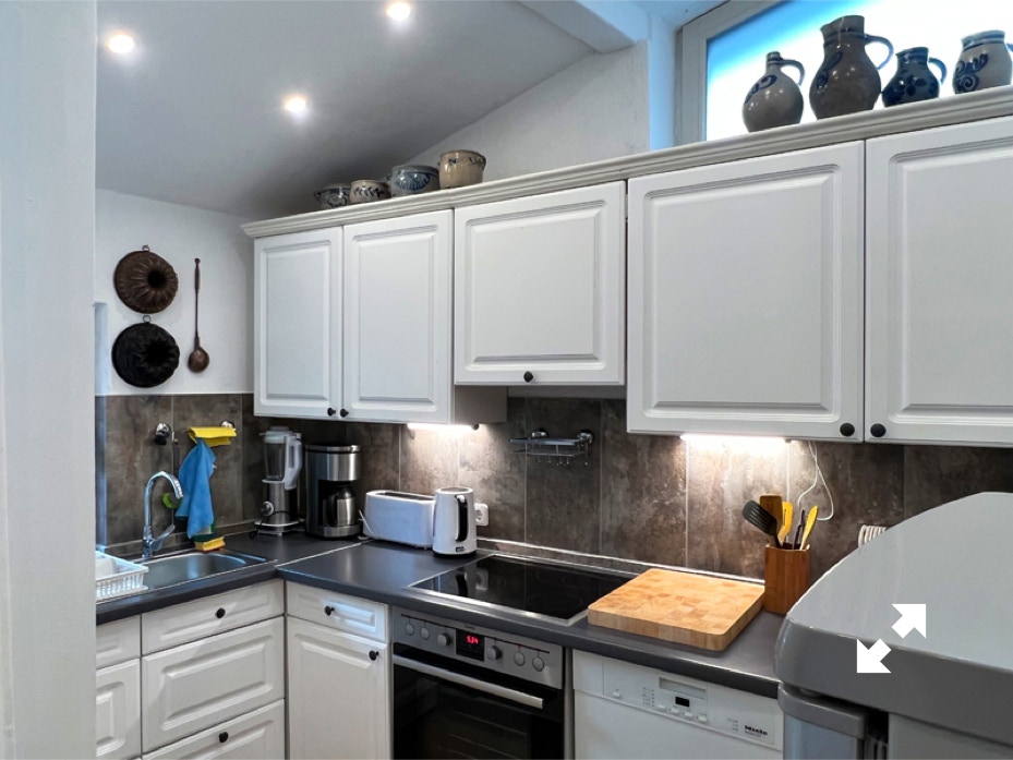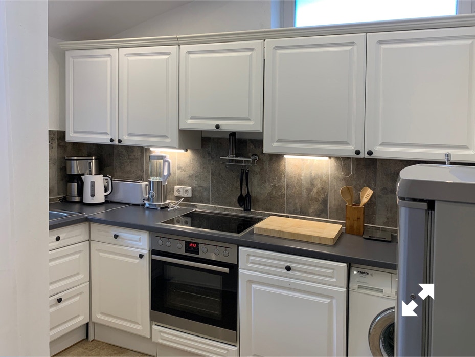 - Gut ausgestattete Küche mit Herd einschl. Ceranfeld und Backofen,