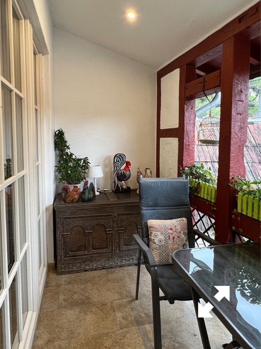- Balkon mit Blick auf die Löwenburg Ruine,