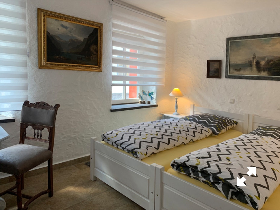 - Schlafzimmer mit zwei Betten (zusammenstehend)